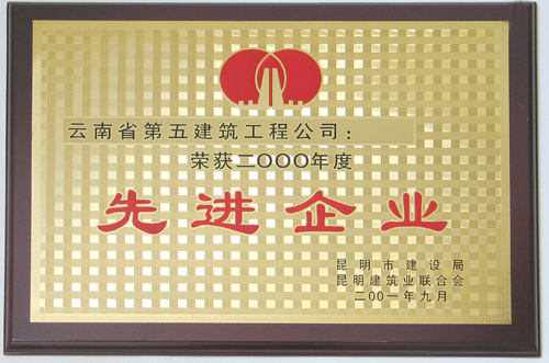 昆明建設(shè)局2000年度先進(jìn)企業(yè)